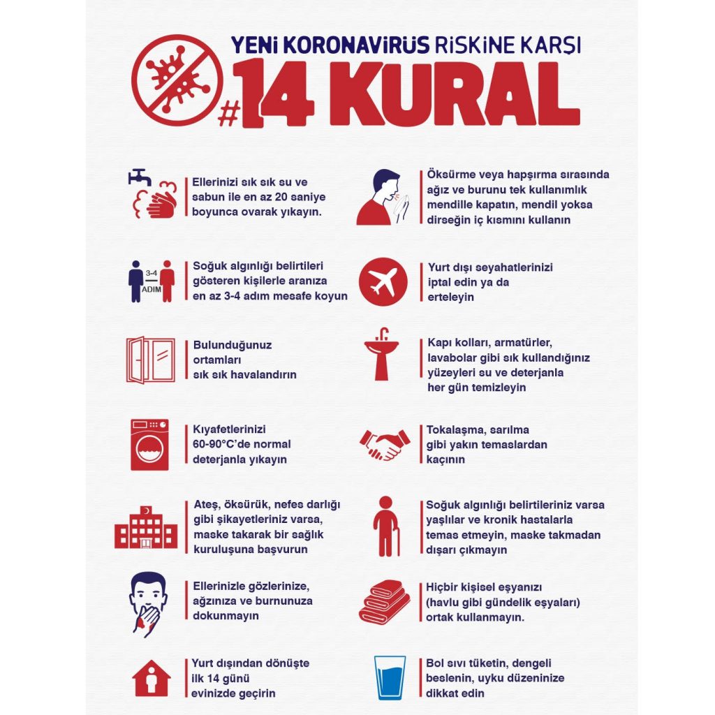 YENİ KORONAVİRÜS RİSKİNE KARŞI 14 KURAL
